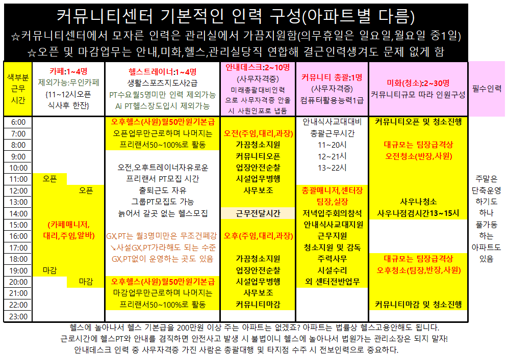 아래는 안내데스크를 주축으로한 커뮤니티센터 참고 시간표^^