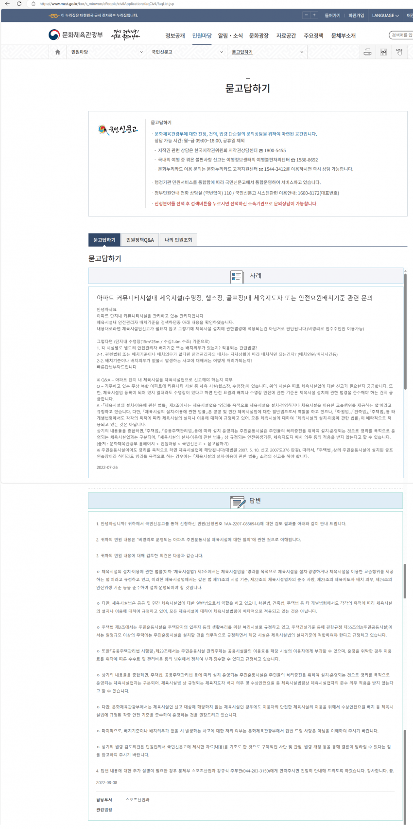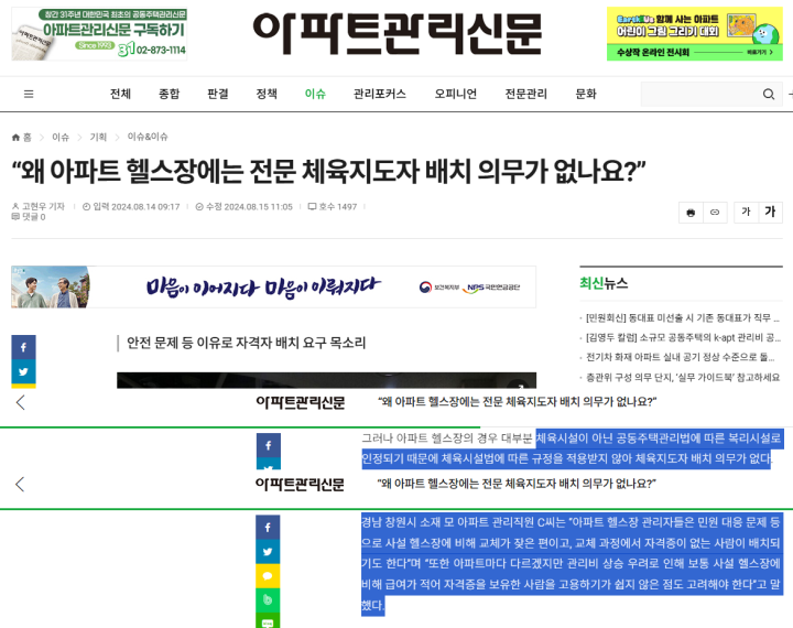 ■입주자회장질문:헬스트레이너 들이 헬스장에 스포츠지도사를 배치 해야 한다고 우기는 데요?