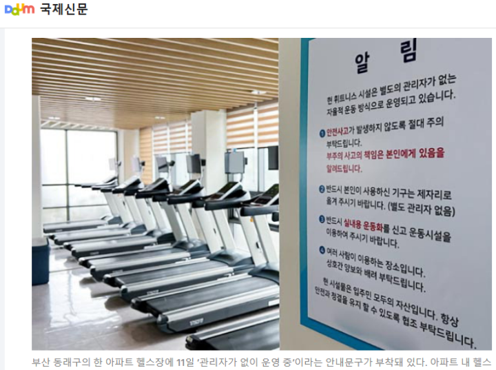 연식이 오래되서 이용객도 없는 아파트 헬스장, 골프장, 수영장 등은 관리자 없이 운영하기도 합니다.